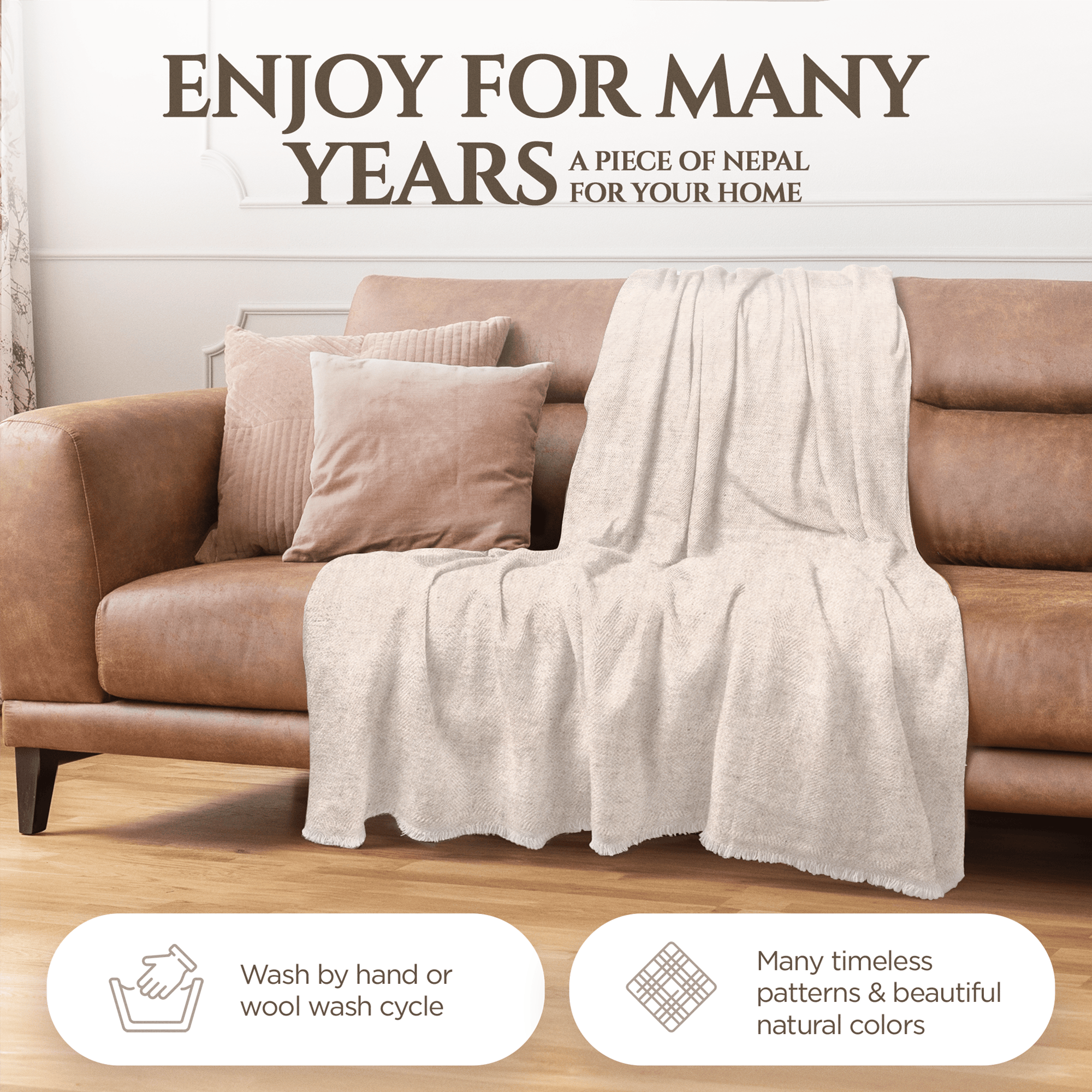 Die Pflege Ihrer Kaschmirprodukte ist einfach, wenn Sie ein paar grundlegende Schritte beachten. Handwäsche oder eine sanfte Maschinenwäsche im Wollwaschgang mit einem milden Wollwaschmittel wird empfohlen. Anschließend legen Sie den Stoff flach zum Trocknen aus, um die Form zu erhalten. Bewahren Sie Ihre Kaschmirwaren sorgfältig in einem sauberen, trockenen und luftdichten Behälter auf, um sie vor Motten zu schützen. Mit der richtigen Pflege können Sie die Schönheit und Weichheit Ihrer Kaschmirprodukte über viele Jahre hinweg bewahren. Wir bei Yanopurna sind stolz darauf, Ihnen die Schönheit und Eleganz der Kaschmirwolle aus Nepal näherzubringen. Unsere handgefertigten Decken, Schals, Tücher und Mützen sind nicht nur eine Bereicherung für Ihre Garderobe, sondern auch ein Symbol für Handwerkskunst und nachhaltige Praktiken. Wir laden Sie herzlich ein, sich in unsere Kollektion zu verlieben und ein Stück der reichen Kultur und Schönheit des Himalayas zu erleben.
