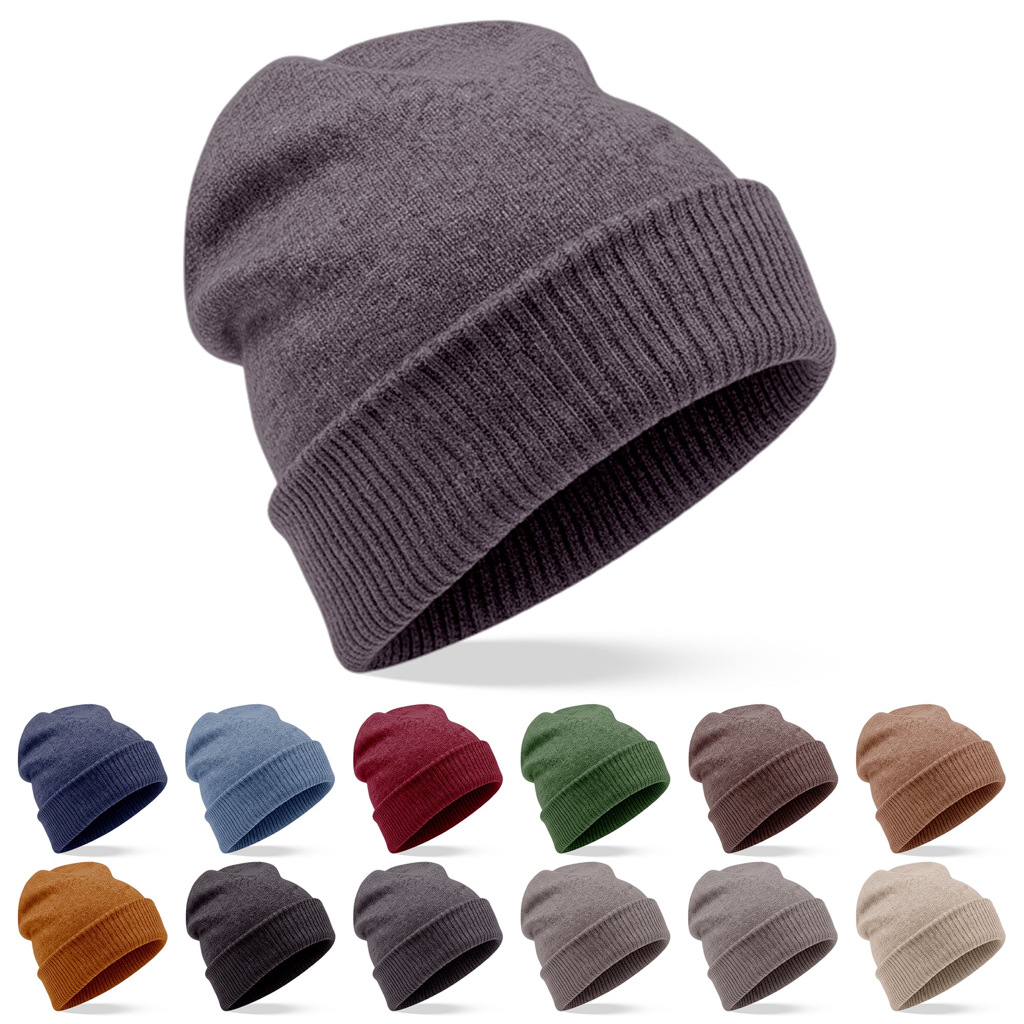 Kaschmirmütze Beanie glatt mit geripptem Umschlag Dunkelgrau