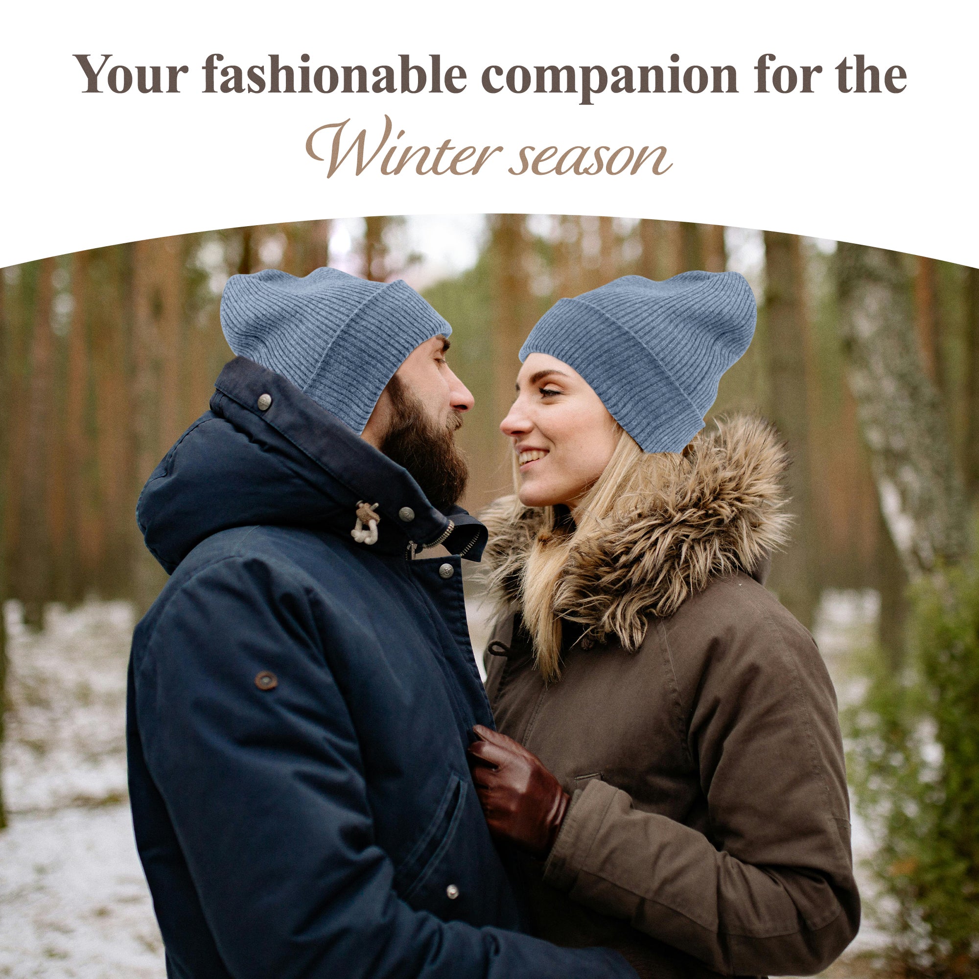 Kaschmirmütze Beanie gerippt mit Umschlag Blau