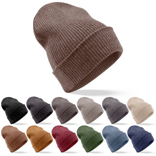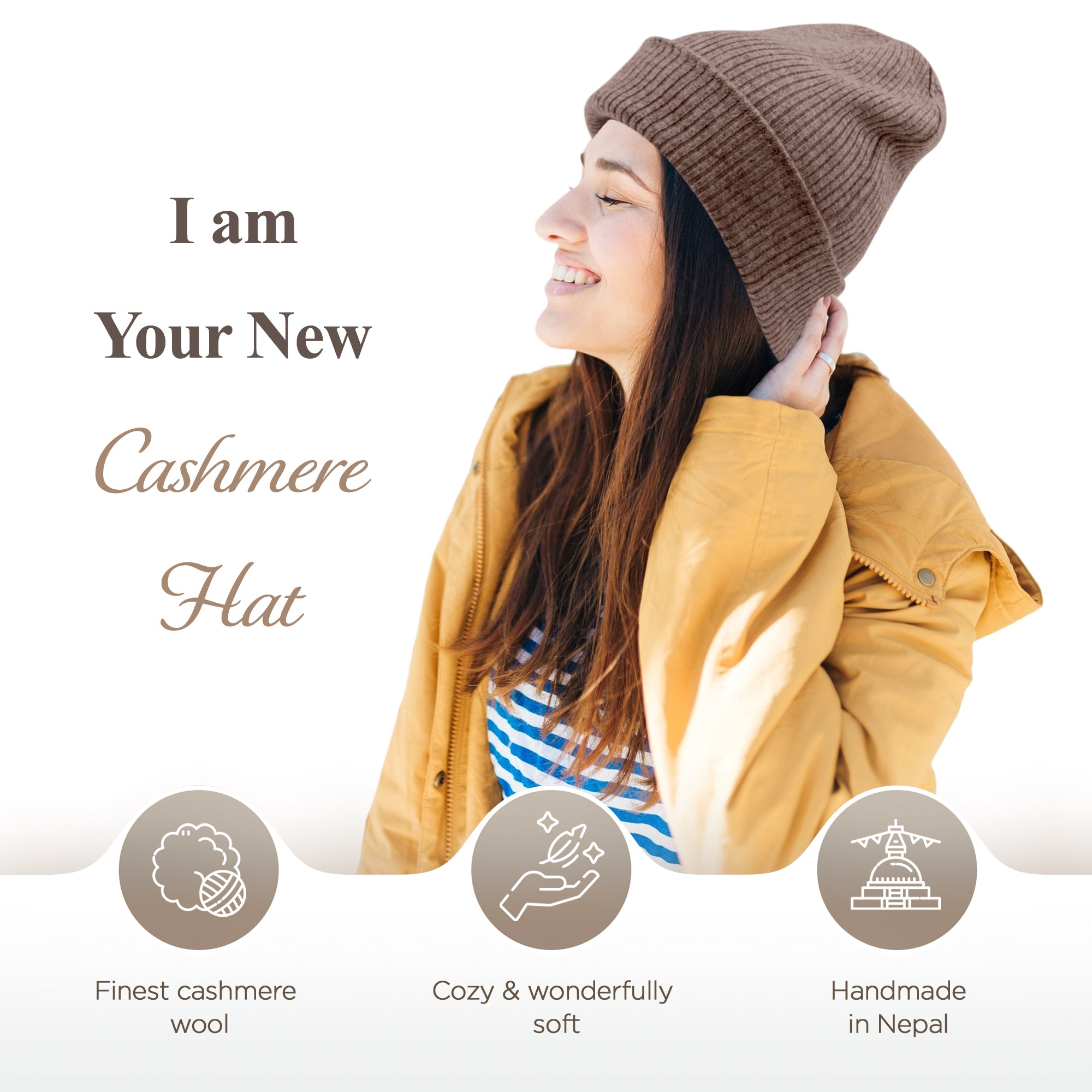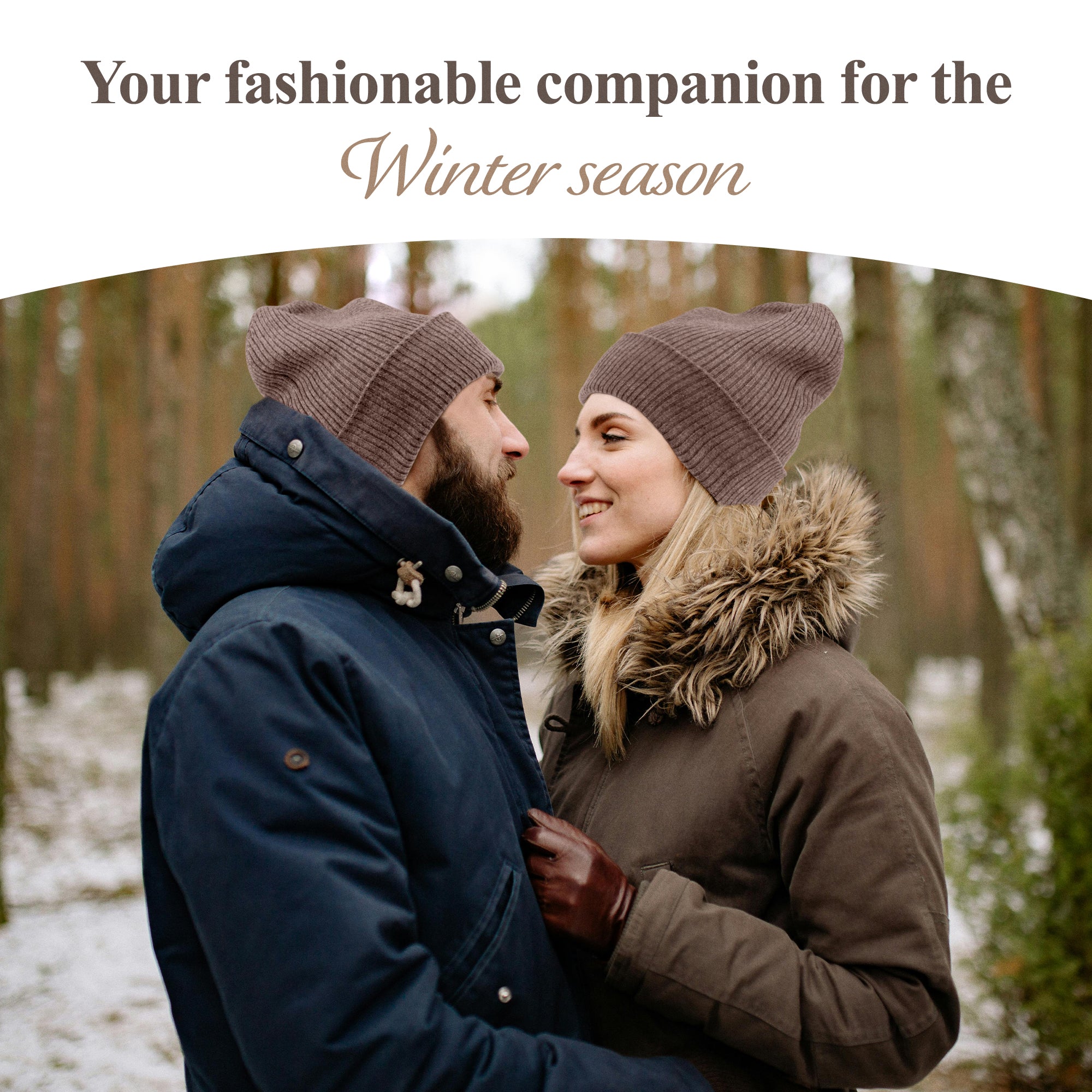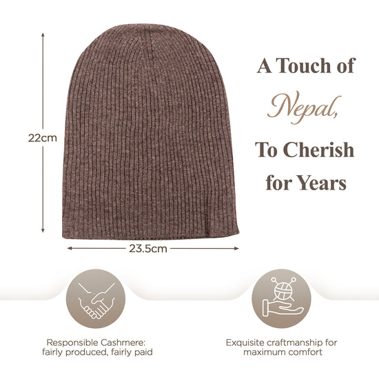 Kaschmirmütze Beanie gerippt mit Umschlag - Dunkelbraun