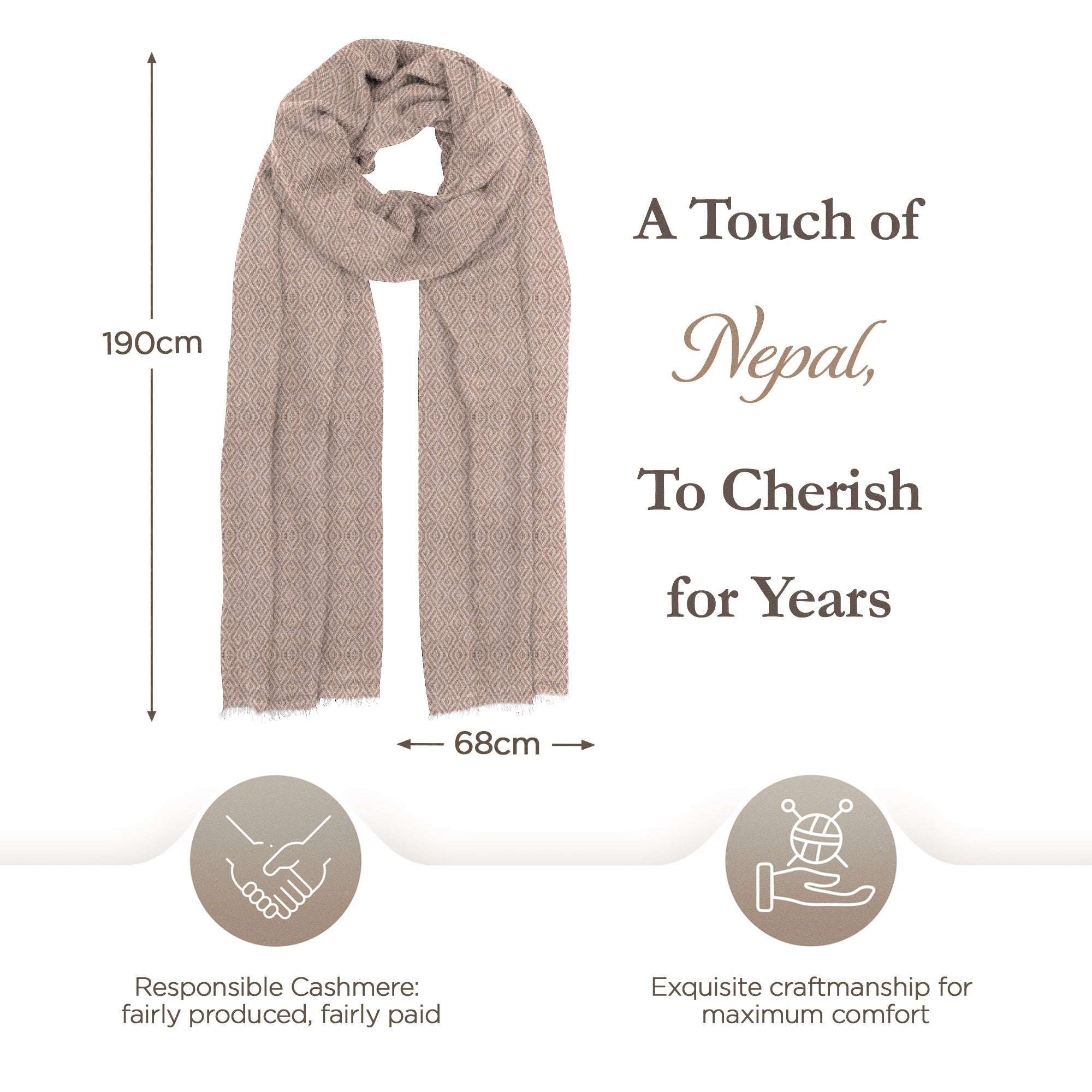 Unsere Kaschmirprodukte stammen aus der atemberaubenden Himalaya-Region Nepals. Dort, in den majestätischen Bergen, finden Sie die Heimat der Kaschmirziegen, die eine der kostbarsten und weichsten Fasern der Welt liefern - Kaschmirwolle. Die traditionellen Techniken des Kaschmirhandwerks wurden über Generationen hinweg von lokalen Handwerkern in Nepal weitergegeben, um die herausragende Qualität unserer Produkte zu gewährleisten.