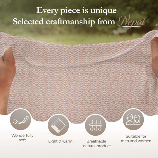 Die Pflege Ihrer Kaschmirprodukte ist einfach, wenn Sie ein paar grundlegende Schritte beachten. Handwäsche oder eine sanfte Maschinenwäsche im Wollwaschgang mit einem milden Wollwaschmittel wird empfohlen. Anschließend legen Sie den Stoff flach zum Trocknen aus, um die Form zu erhalten. Bewahren Sie Ihre Kaschmirwaren sorgfältig in einem sauberen, trockenen und luftdichten Behälter auf, um sie vor Motten zu schützen. Mit der richtigen Pflege können Sie die Schönheit und Weichheit Ihrer Kaschmirprodukte über viele Jahre hinweg bewahren. Wir bei Yanopurna sind stolz darauf, Ihnen die Schönheit und Eleganz der Kaschmirwolle aus Nepal näherzubringen. Unsere handgefertigten Decken, Schals, Tücher und Mützen sind nicht nur eine Bereicherung für Ihre Garderobe, sondern auch ein Symbol für Handwerkskunst und nachhaltige Praktiken. Wir laden Sie herzlich ein, sich in unsere Kollektion zu verlieben und ein Stück der reichen Kultur und Schönheit des Himalayas zu erleben.